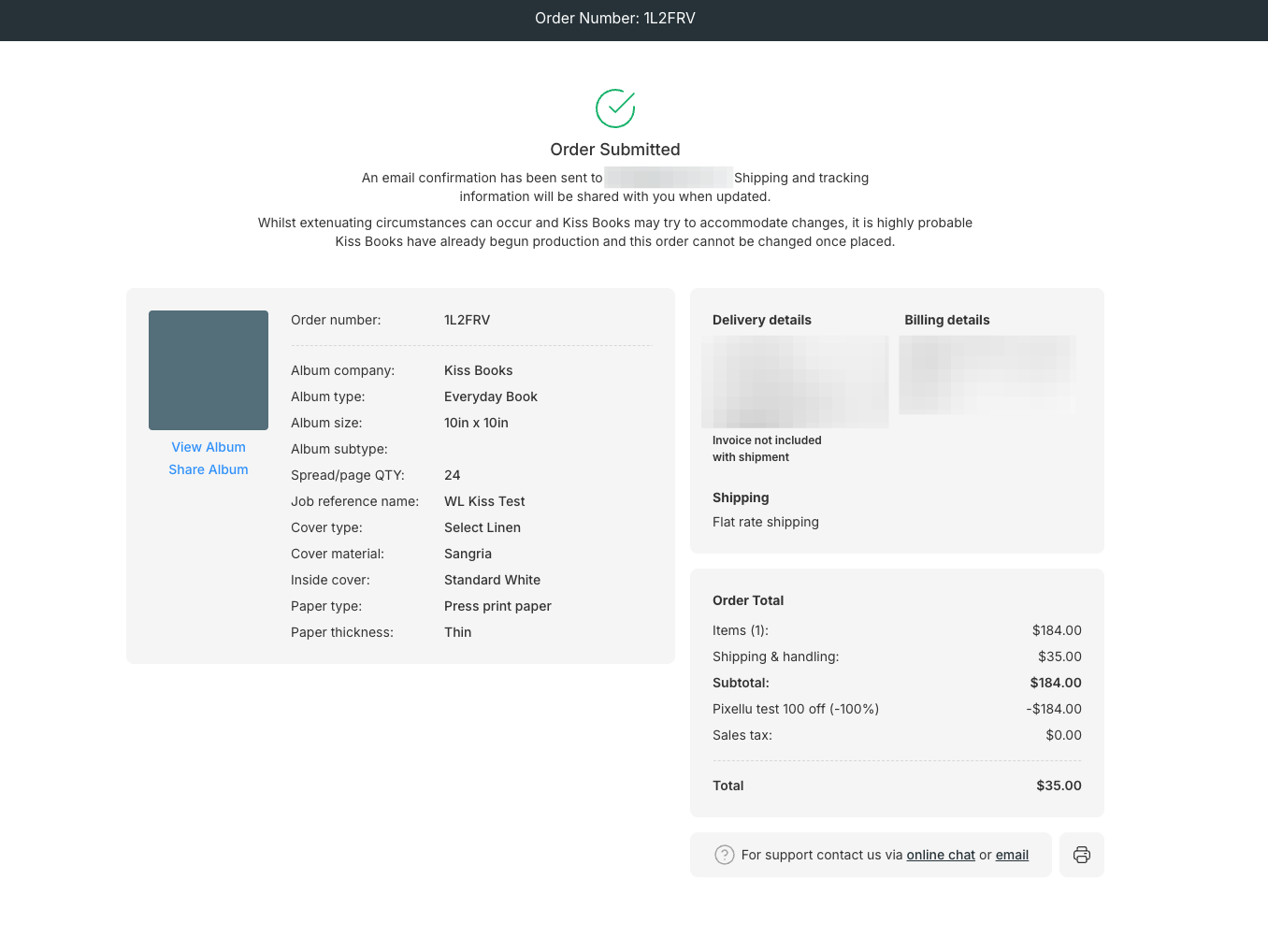 6. Once paid, you will be redirected to the order confirmation page (as seen below), and you will receive an email confirming the order.