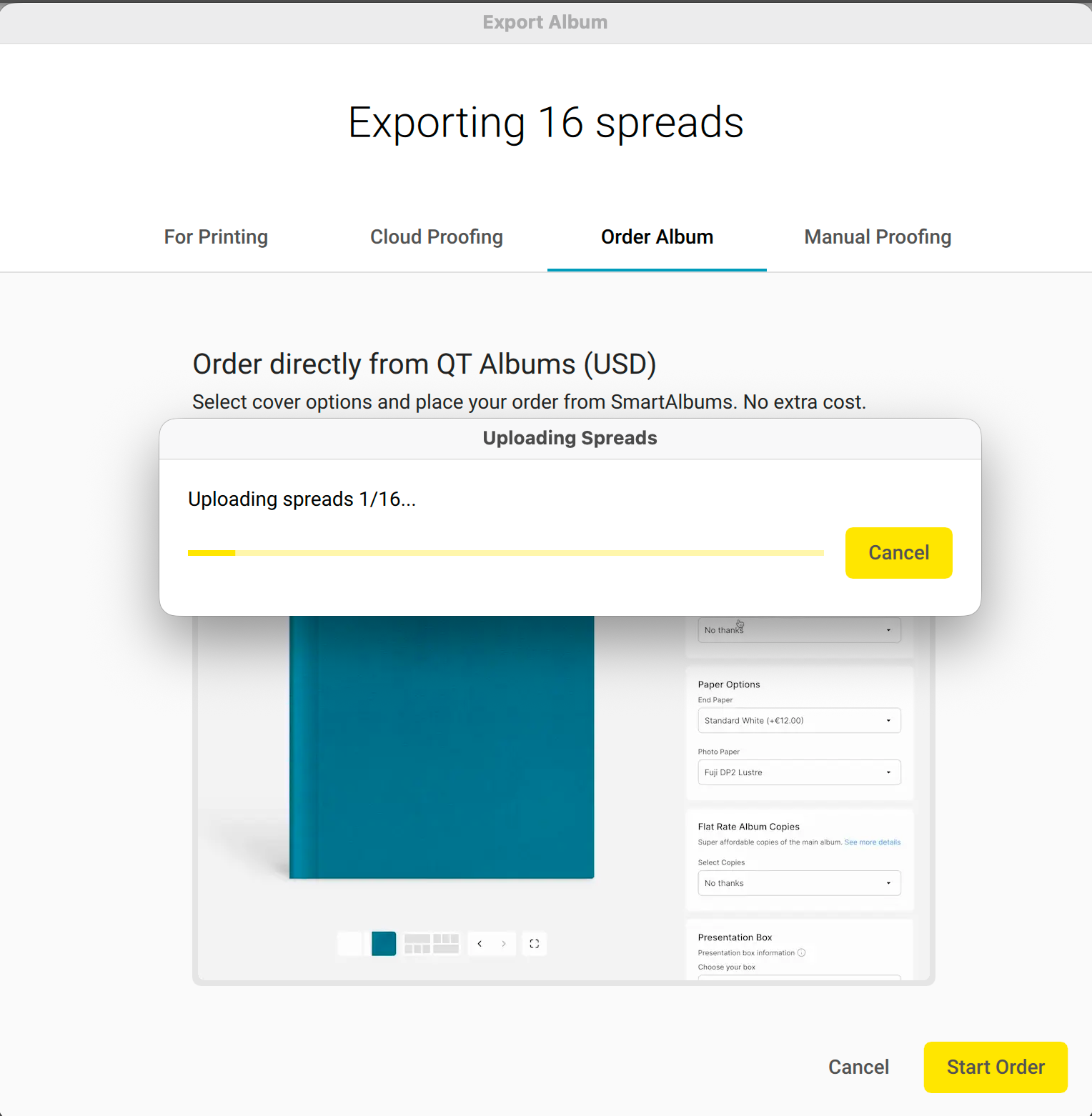 - SmartAlbums will automatically upload your album spreads and open a browser tab for customization