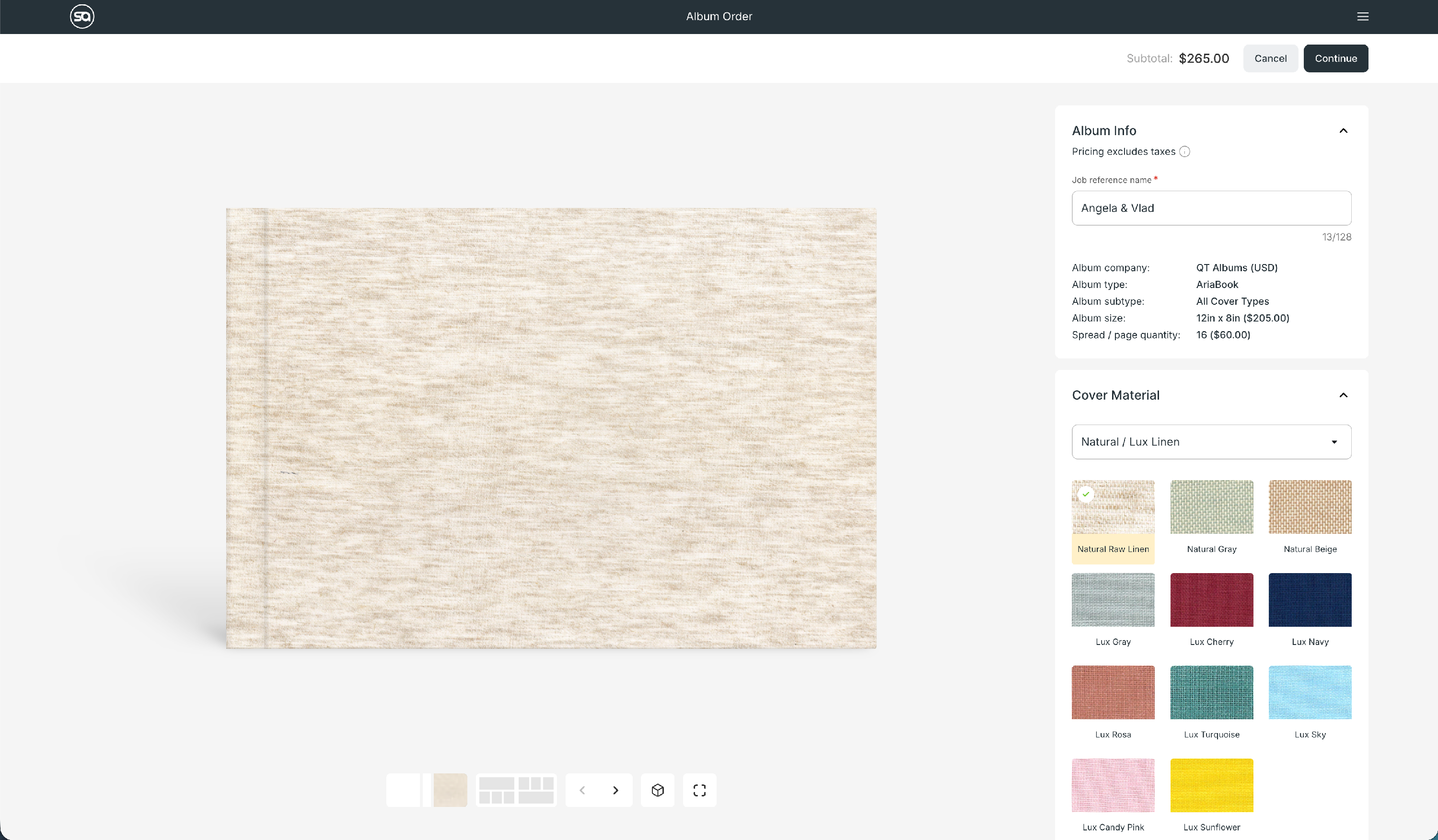 You can order albums from QT Albums (U.S.) and QT Albums (Europe) directly from SmartAlbums after completing your design.